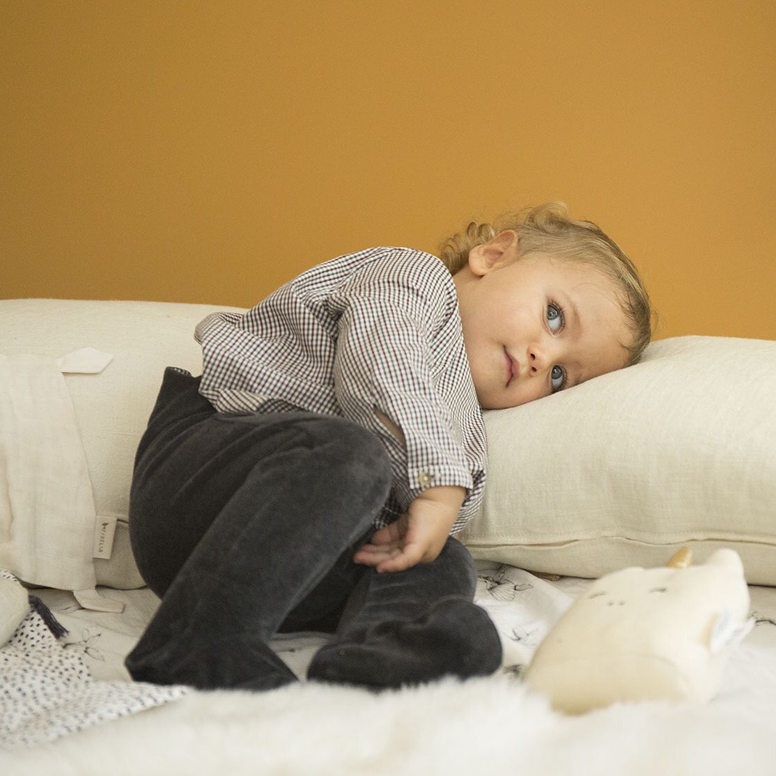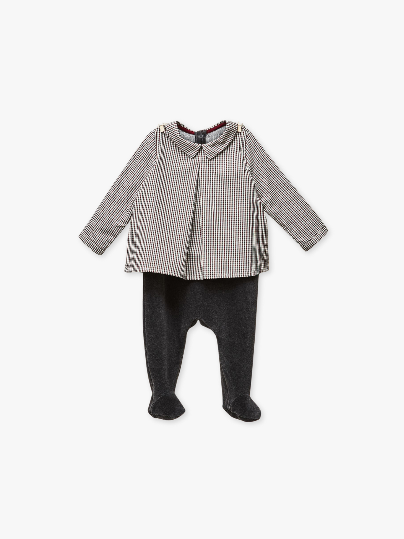 Cet ensemble pour bébé allie confort et élégance moderne. La blouse, aux manches longues, col chemise, et plissé délicat, offre une allure raffinée. Dans des coloris anthracite, blanc et bordeaux, elle crée une palette chic. Le dors-bien assorti, en anthracite, complète harmonieusement l’ensemble.