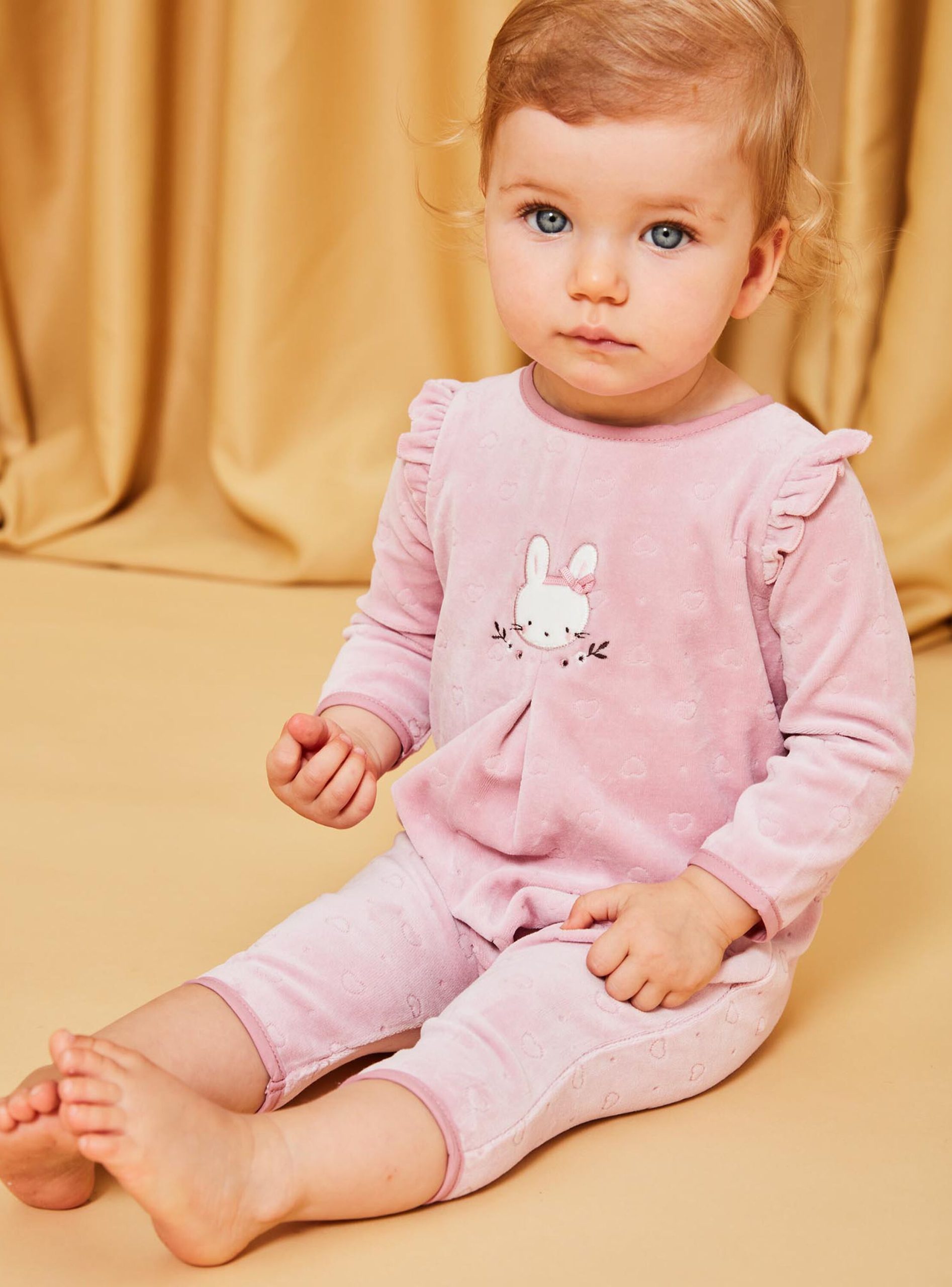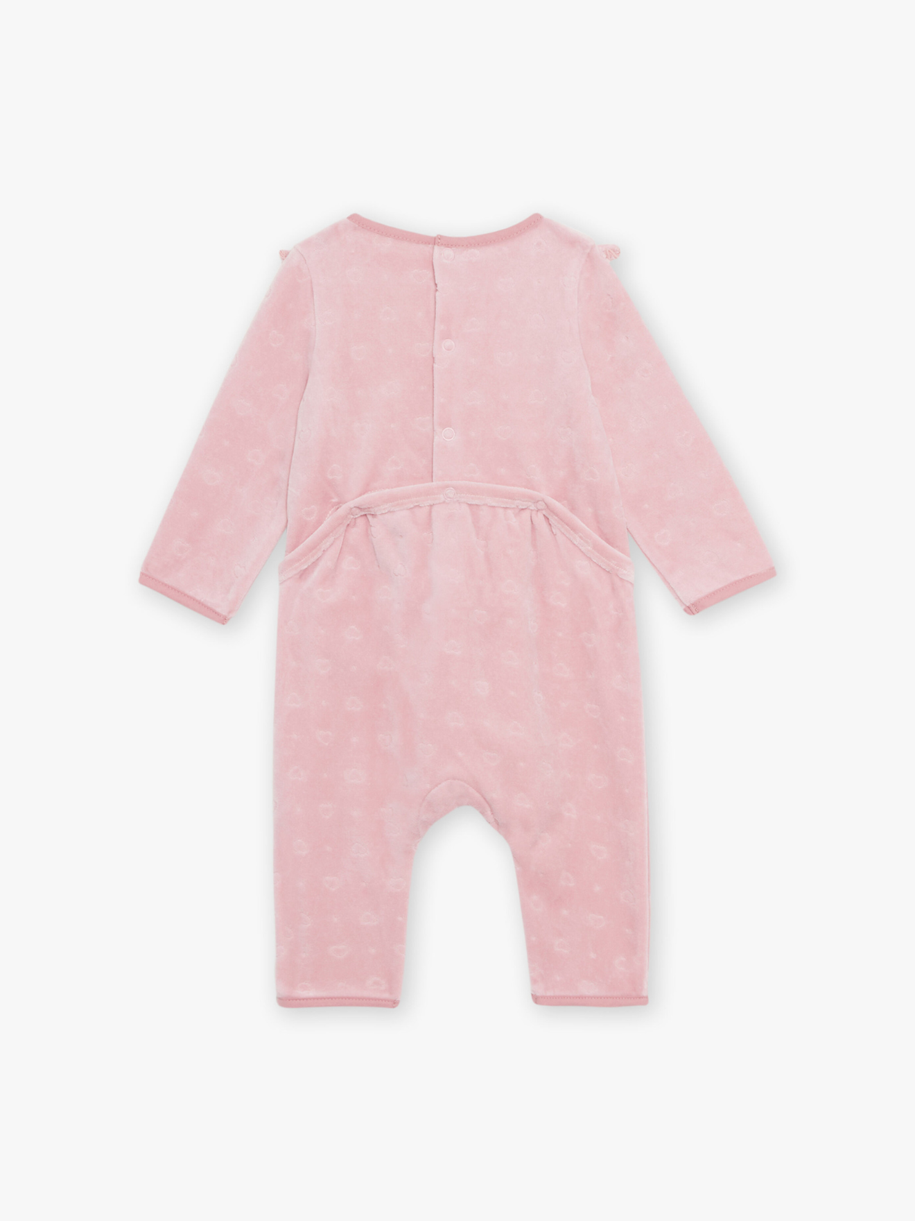- Matière en velours rose dévoré finition à petits cœurs et petits pois