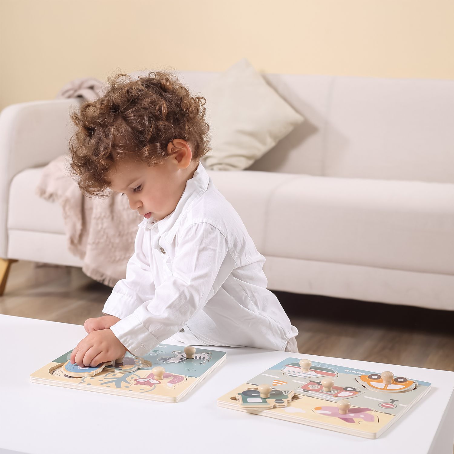 Les images en dessous et les pièces du puzzle qui leur sont associées permettent à ce simple puzzle de stimuler la pensée logique des enfants lorsqu’ils sont encore petits. Encourage la créativité et la coordination œil-main.