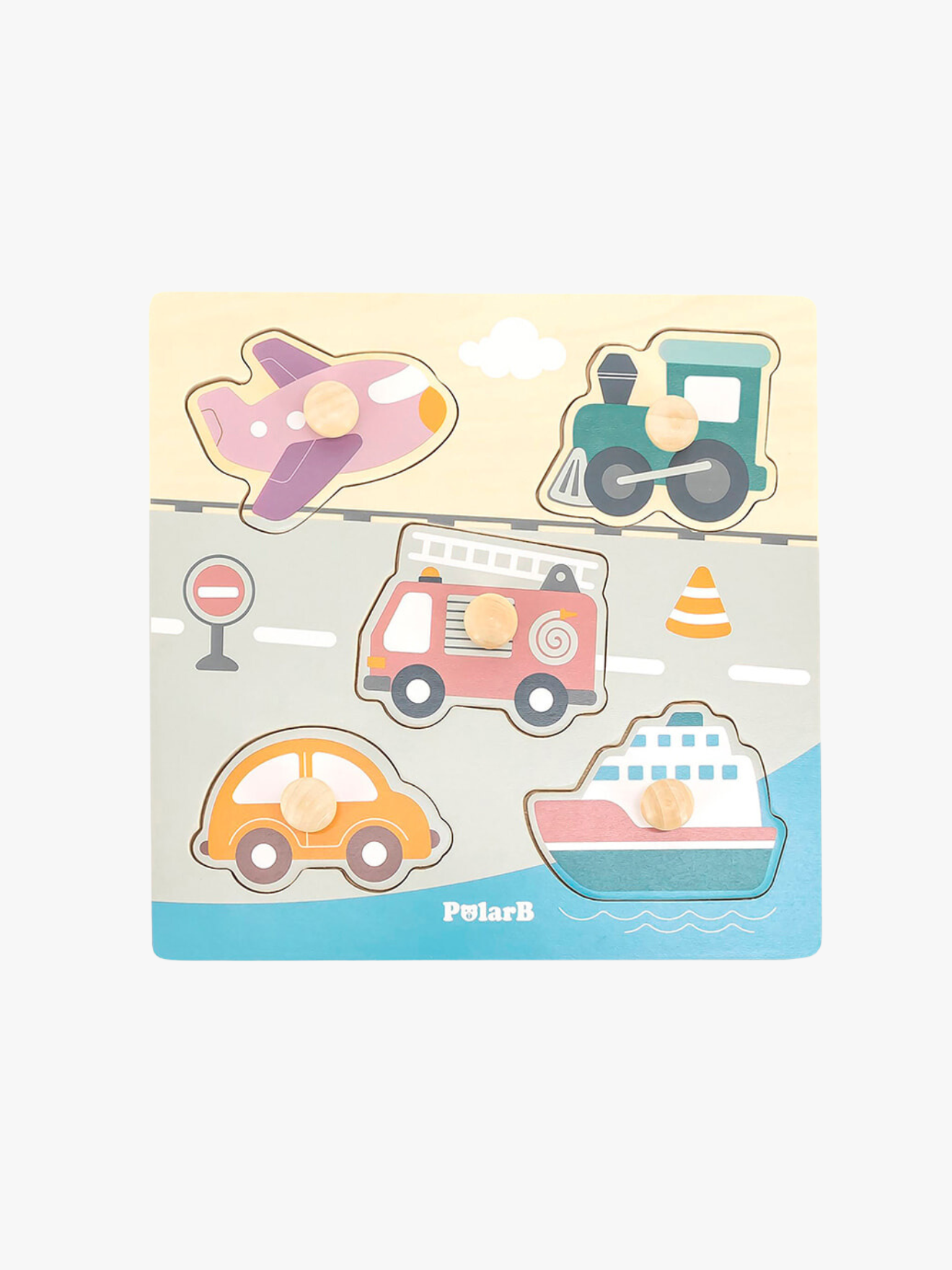 - Ensemble de 5 puzzles à attaches avec des véhicules